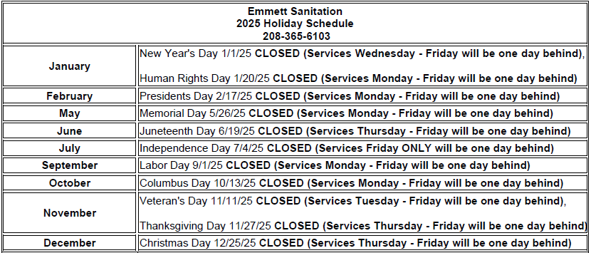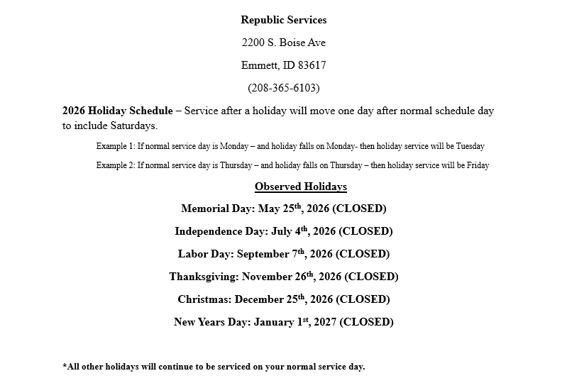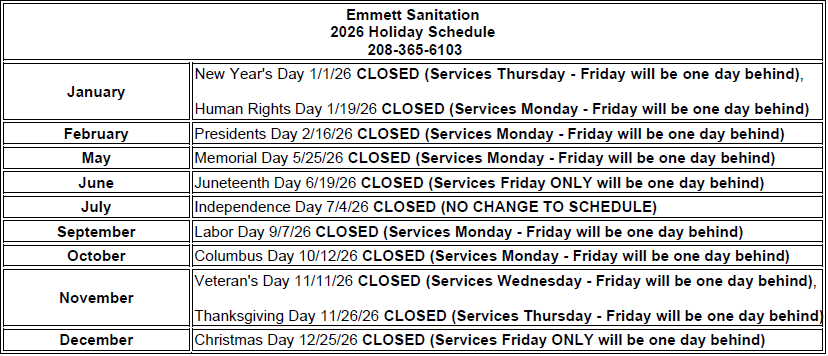 Keep it clean, keep us healthy: bag your trash. Help prevent the spread of illness in the community and to Emmett Sanitation employees.